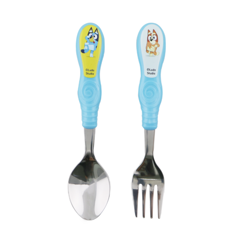 Make mealtime fun for your little one with this Bluey decorated 2 piece cutlery set. Including a fork and spoon with easy grip handles perfect for your little one, this set is sure to be their favourite for all meals!