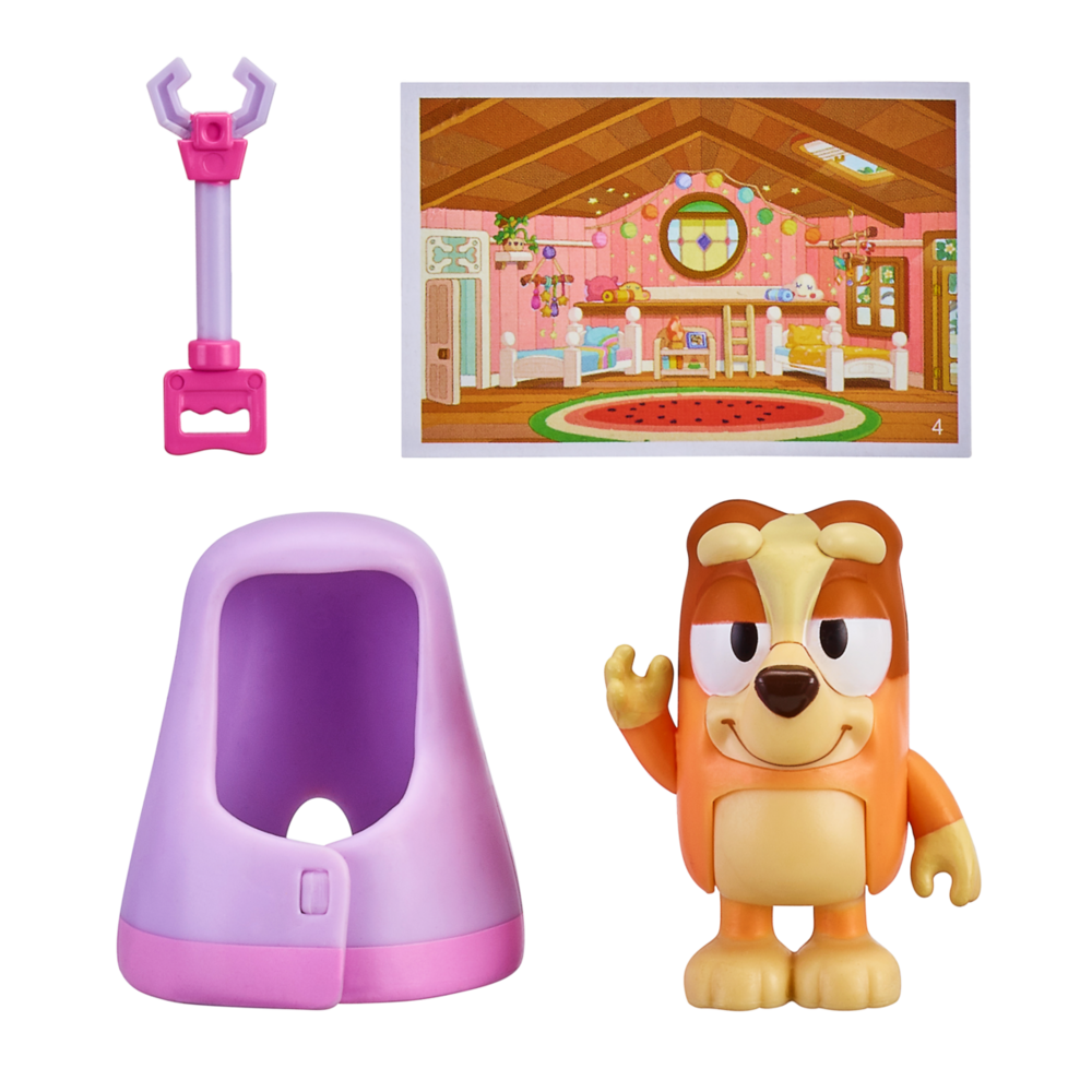 Join Bluey, Bingo and their friends Mackenzie and Chloe as they have fun imagining and creating stories. Each Story Starter Pack is themed around one of Bluey’s episodes and comes with an accessory for your character to play with. Also included in each pack is a cute Mini Postcard showing a scene from the Bluey TV show. There are 6 fun Story Starter Packs to collect. All 6-8cm Figures in these packs have moving arms and body.