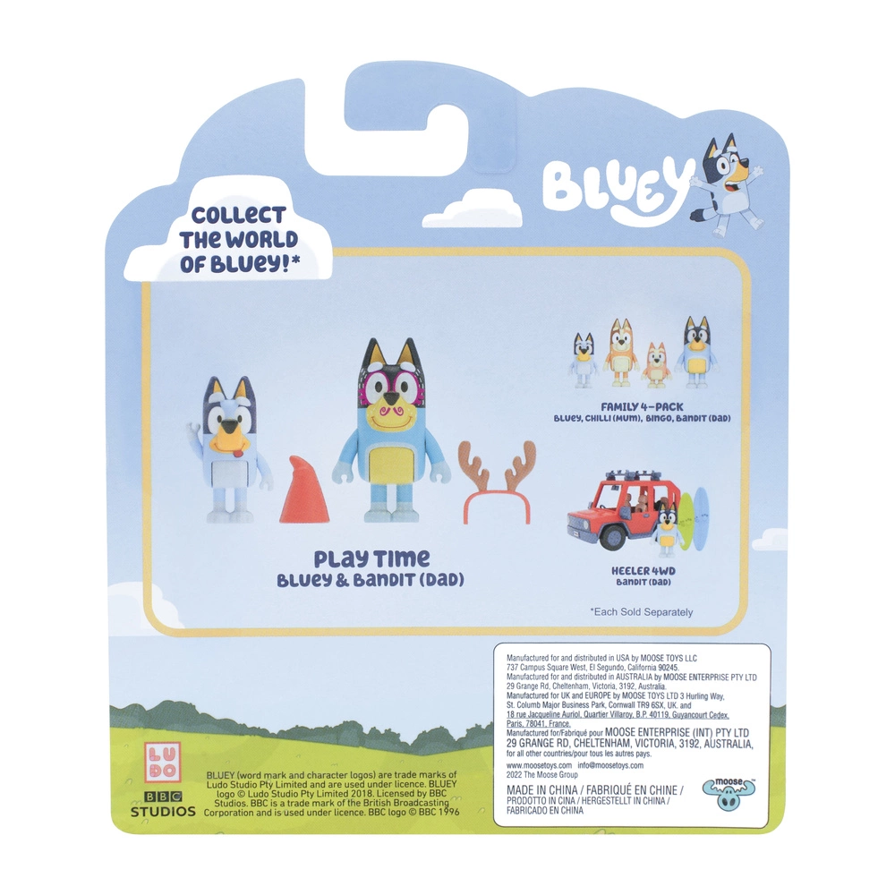 This fun Bluey Figure 2 Pack is themed around a Bluey episode and comes with accessories to dress up the characters. Kids will love playing with “Play Time Bluey” and her Dad Bandit as they recreate the classic “Magic Xylophone” episode! Bluey’s figure has a fun expression and Dad has felt pen markings drawn all over his face! The pack contains two accessories – a garden gnome hat and a pair of antlers for the characters to wear. The 6.35cm- 7.6cm figures in these packs have moving arms and bodies so they can be posed. Children will love to recreate some of the most memorable moments from the Bluey TV show with these adorable toys!