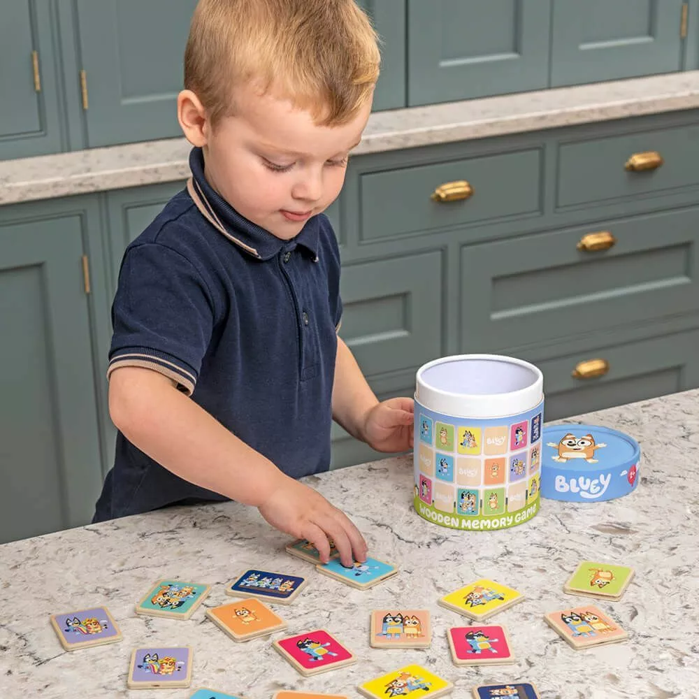 Get ready to test your memory, just like Bandit and Bluey from the Obstacle Course episode. This colourful Bluey Memory Game is the perfect way to keep minds’ stimulated. Little ones can play with friends or test themselves as they flip over the individual Bluey pieces and try and match them up. The Bluey Memory Game is made from responsibly sourced materials, the wooden products are certified by the FSC.