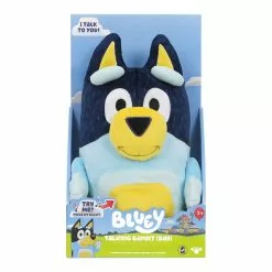Bring the fun and imaginative play of Bluey home with the Talking Bandit (Dad) 30.4cm plush! Press Bandit’s tummy to hear 9 fun phrases that Bandit says from the Bluey TV show. You can even sing along with Bandit to the Bluey theme song! Bandit is the perfect size for cuddles. So soft to hold and made with deluxe fabrics and detailed stitching, this talking plush doubles as a cuddly toy for showtime or storytime.