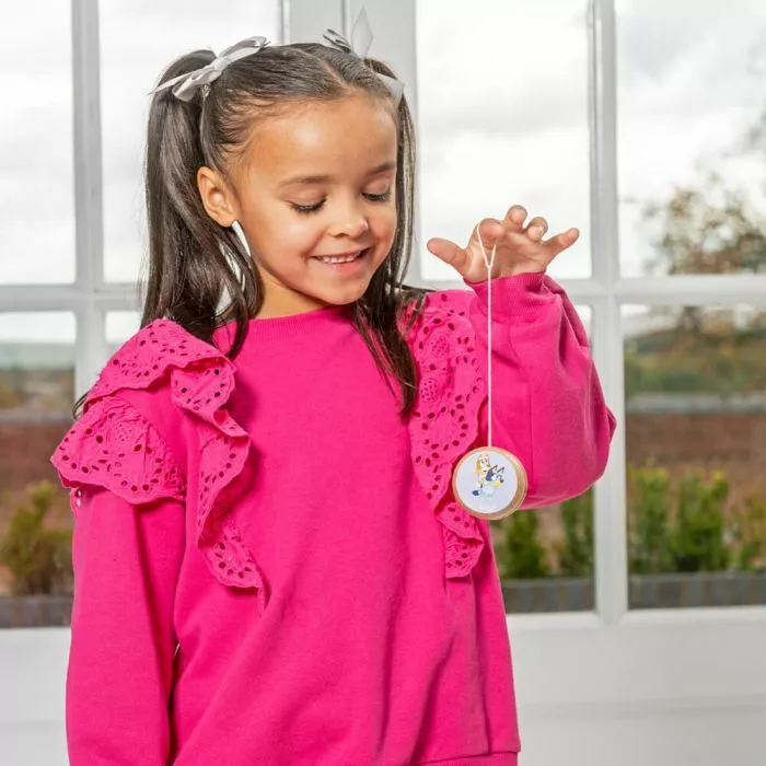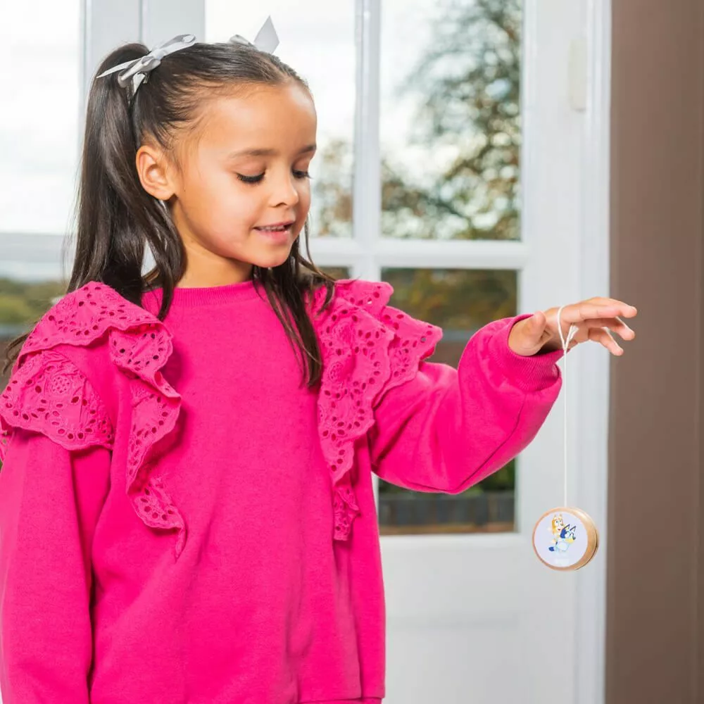 This traditional wooden Bluey YoYo is the perfect gift for little ones for when boredom hits. Beautifully printed with Bingo and Bluey character art, kids will have endless hours of fun perfecting their YoYo skills whilst practising hand-eye coordination. The Bluey YoYo is presented in a box and made from responsibly sourced materials, the wooden products are certified by the FSC.