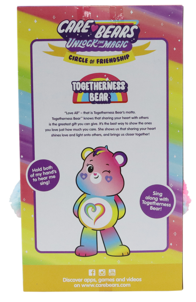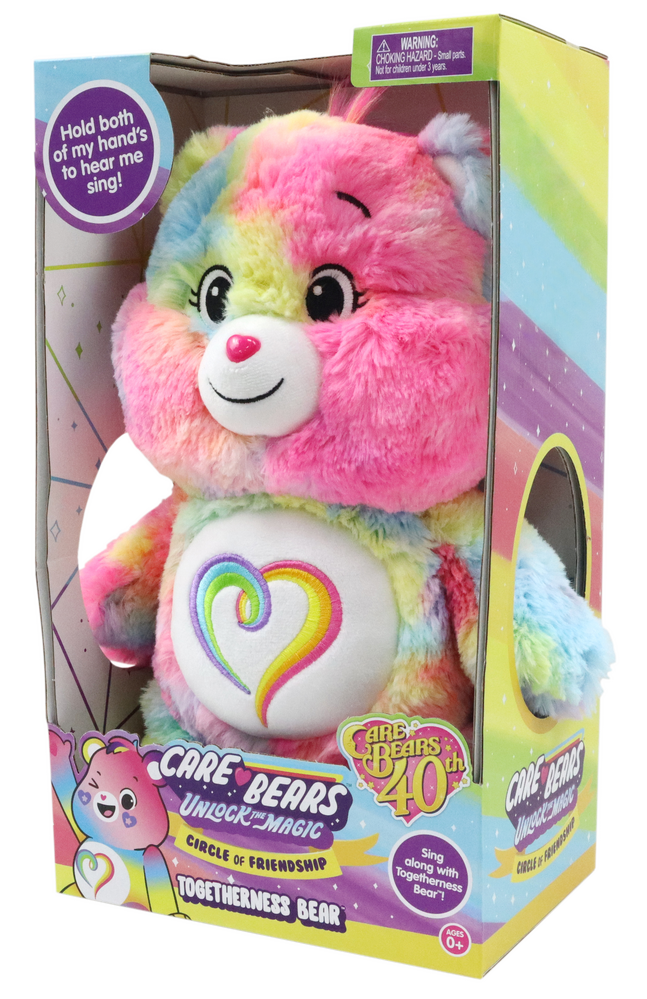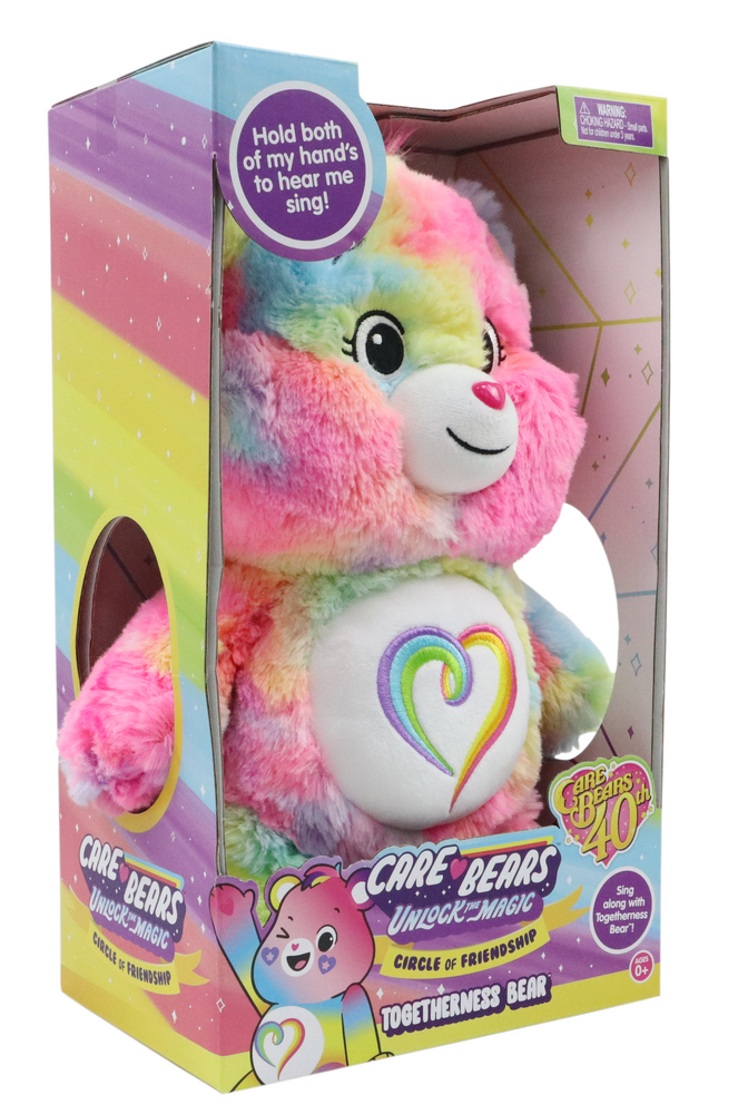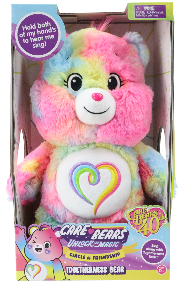 Hold both her hands to hear Togetherness Bear sing, and sing along with her! This super cuddly 35cm Care Bear plush is the perfect companion.
