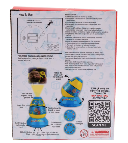 The CoComelon 2-in-1 Projector and Night Light will delight all CoComelon fans. Its portable light is a soothing night light that will also project favourite characters onto the wall or ceiling. Watch as CoComelon is brought to life during bedtime stories.