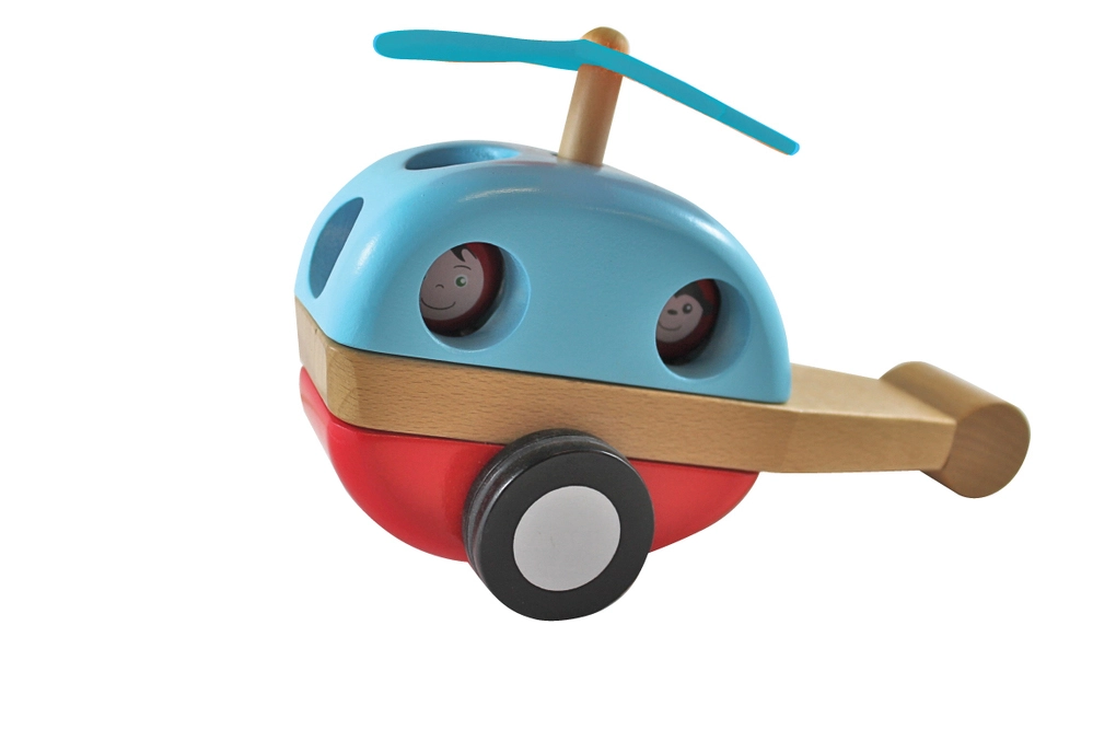 Magnetic Stacking Helicopter has 5 pieces which join together with safe hidden magnets. The felt rotor spins as the wheels turn. Great for motor skills and hours of open-ended play.
