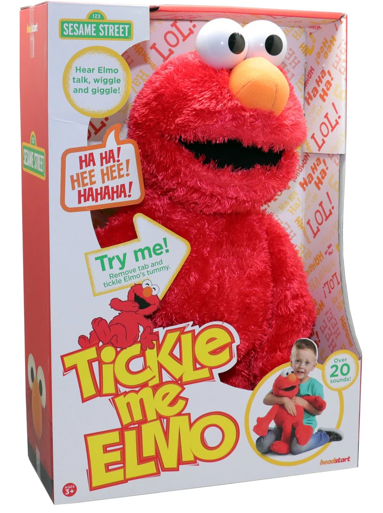 Includes over 20 Elmo sounds- the more you tickle Elmo’s tummy the harder he laughs & wiggles!