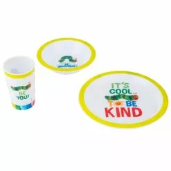 Make mealtimes fun with this adorable 3-piece dinner set from The World Of Eric Carle, which includes a plate, bowl and tumbler. Featuring a bright and colourful design inspired by the iconic Very Hungry Caterpillar, little ones will want to eat up so they can see which of their favourite characters is waiting underneath! All items are made from 100% BPA-free polypropylene plastic, which is shatter-proof, non-toxic and ultimately safer for children.